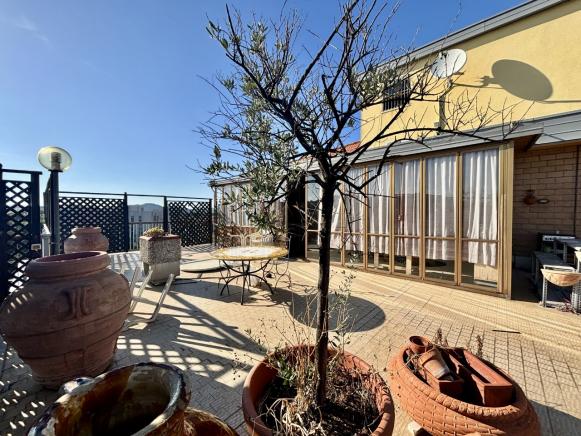 PESARO, PANTANO ALTA, AL QUINTO ED ULTIMO PIANO DI CONDOMINIO SI VENDE ATTICO CON VISTA PANORAMICA E ARIOSA SULLE COLLINE DELLA CITTA'. L'APPARTAMENTO SI SVILUPPA SU UN UNICO LIVELLO ED E' DI CIRCA 130MQ: INGRESSO, CUCINA ABITABILE CHE CONDUCE A AMPIA VERANDA (CONDONATA) CHE AFFACCIA SU TERRAZZONE DI 85MQ. SALONE DOPPIO, BAGNO, DUE CAMERE, BALCONI. FACILMENTE RICAVABILE LA TERZA STANZA. SEPPUR L'IMMOBILE ABBIA UNO STATO DI CONSERVAZIONE DECOROSO E SIGNORILE, NECESSITA DI UNA RIVISITAZIONE INTERNA PARZIALE E/O TOTALE. COMPLETANO LA PROPRIETA' POSTO AUTO COPERTO E SOFFITTA.