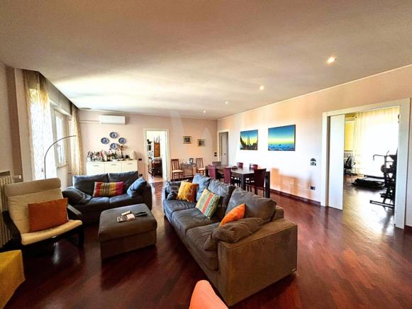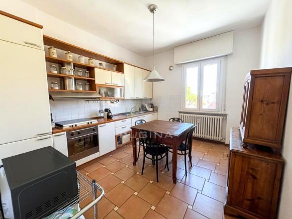 Pesaro, zona Via Giolitti, in contesto condominiale signorile, proponiamo in vendita appartamento al terzo piano servito da ascensore di circa 120mq: ingresso padronale, guardaroba/ripostiglio, ampio soggiorno grande con ingresso su balcone, cucina abitabile, disimpegno, due camere, ampio bagno con vasca e doccia e secondo bagno di servizio. Terza camera con balcone. Completa la proprietà una posto auto coperto in vano condominiale e soffitta ad uso ripostiglio. Ristrutturato, buone e signorili le finiture
